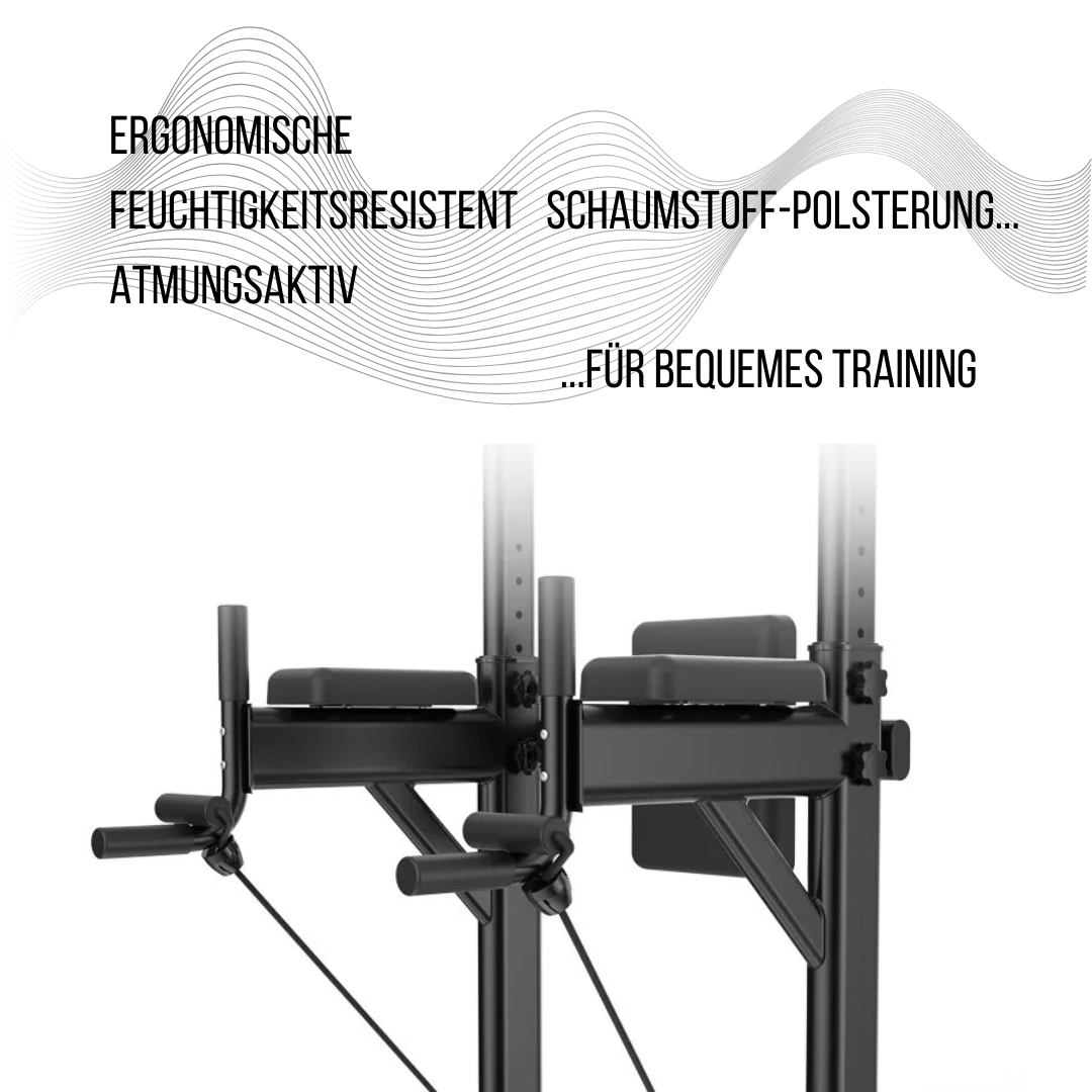 Die Enchantia PowerStation bietet dir ein stabiles, sicheres und effektives Training ohne Kompromisse. Ihre robuste Konstruktion trägt bis zu 110 kg, ist höhenverstellbar und ideal für unterschiedliche Körpergrößen – sogar in Dachgeschosswohnungen. Rutschfeste Schaumstoffgriffe und ein durchdachtes Design ermöglichen Klimmzüge, Dips und Liegestütze ohne Einschränkungen. Kompakt, platzsparend und leicht aufzubauen, macht sie dein Homegym komplett. Trainiere smarter, werde dein starkes ICH!